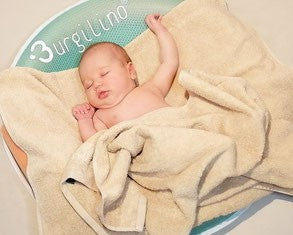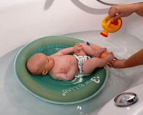 Aufgrund der runden Form und der Begrenzung durch den Stoff fühlen sich auch Babys, die ihr Bad sonst nicht so genießen können, sicher und geborgen – fast wie im Mutterleib. Im Gegensatz zu herkömmlichen Baby-Schwimmhilfen ermöglicht die Burgilino Wasserwiege Babys eine freie Bewegungsentwicklung von Anfang an.